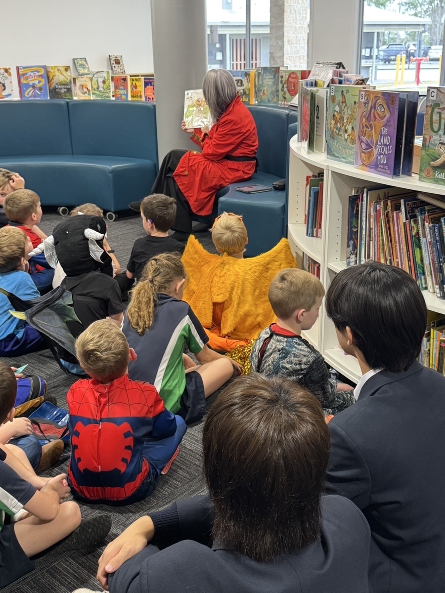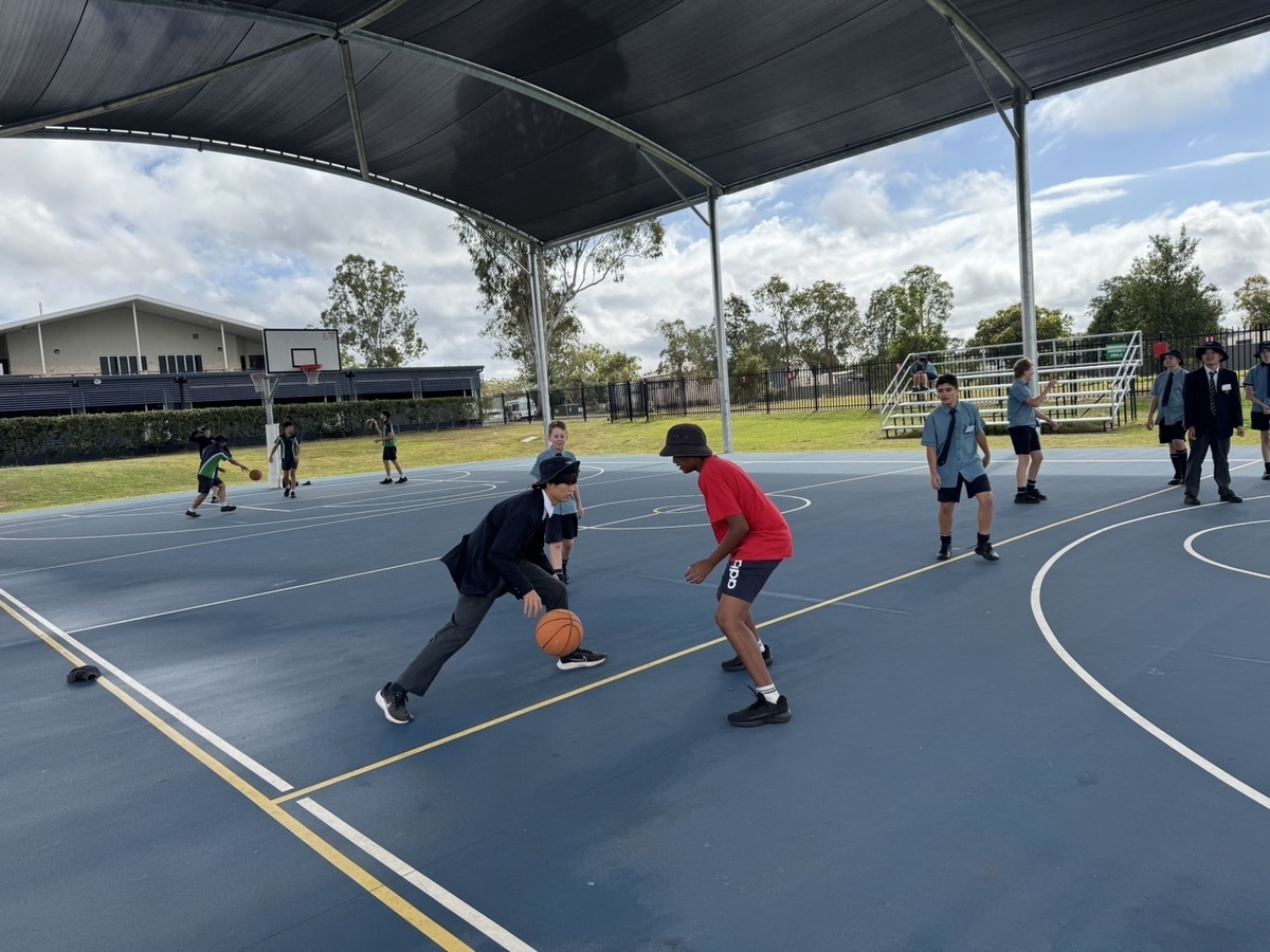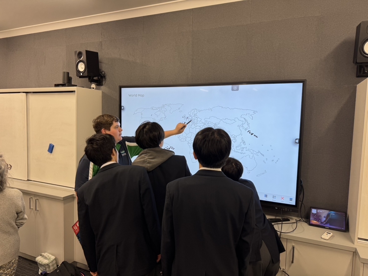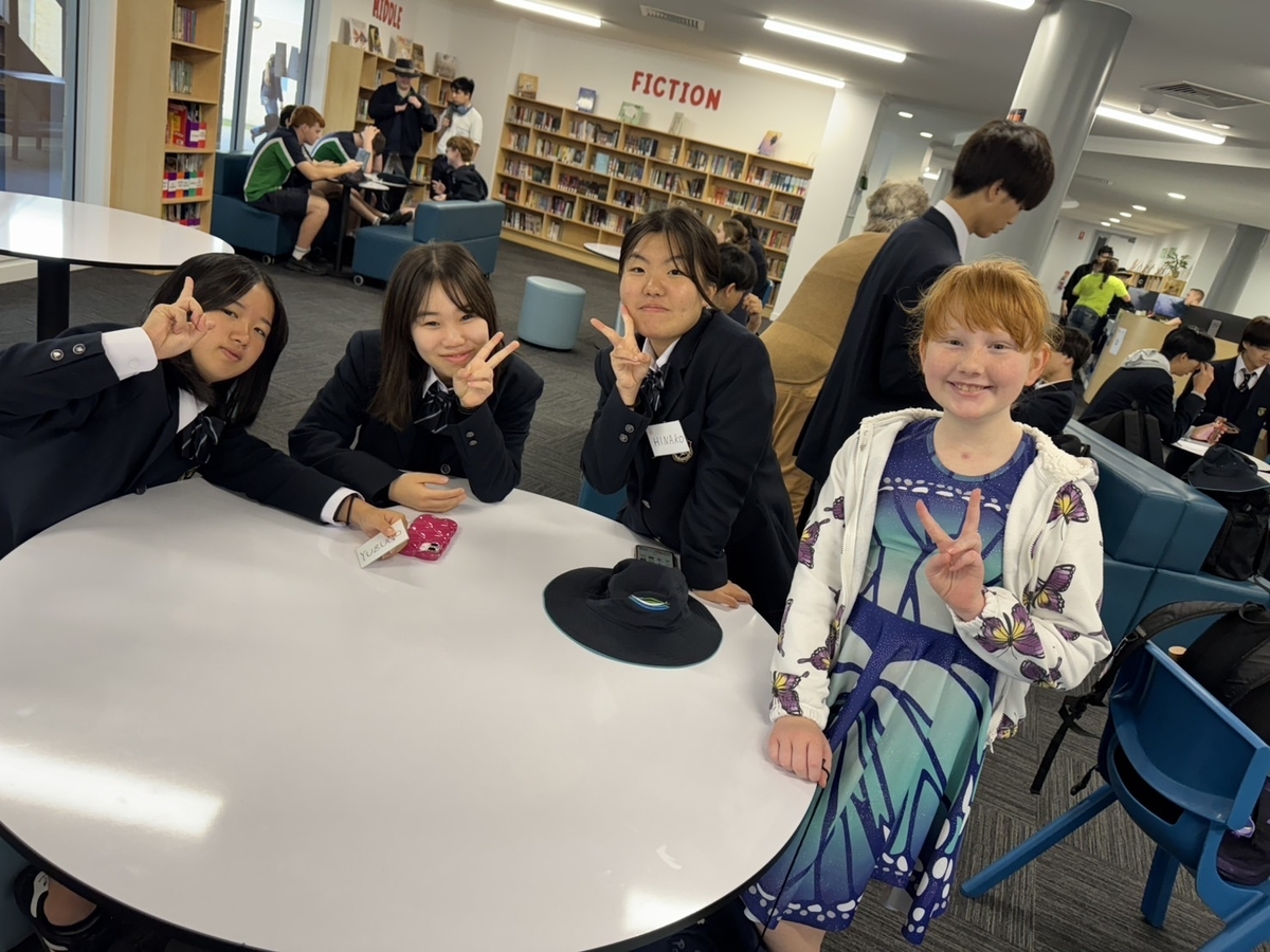その後のESLでは、ペニー先生とタチアナ先生によるオージーイングリッシュの復習が行われました。モーニングティーの時間には、お菓子を楽しむ代わりに、バスケットボールに夢中になる男子生徒の姿もありました。続いて図書館司書の先生による読み聞かせがあり、さらにフレーザーコースト市の市長さんが来校され、生徒たちと気さくに交流してくださいました。日本の流行についてもたくさん質問していただき、生徒たちは笑顔で答えていました。